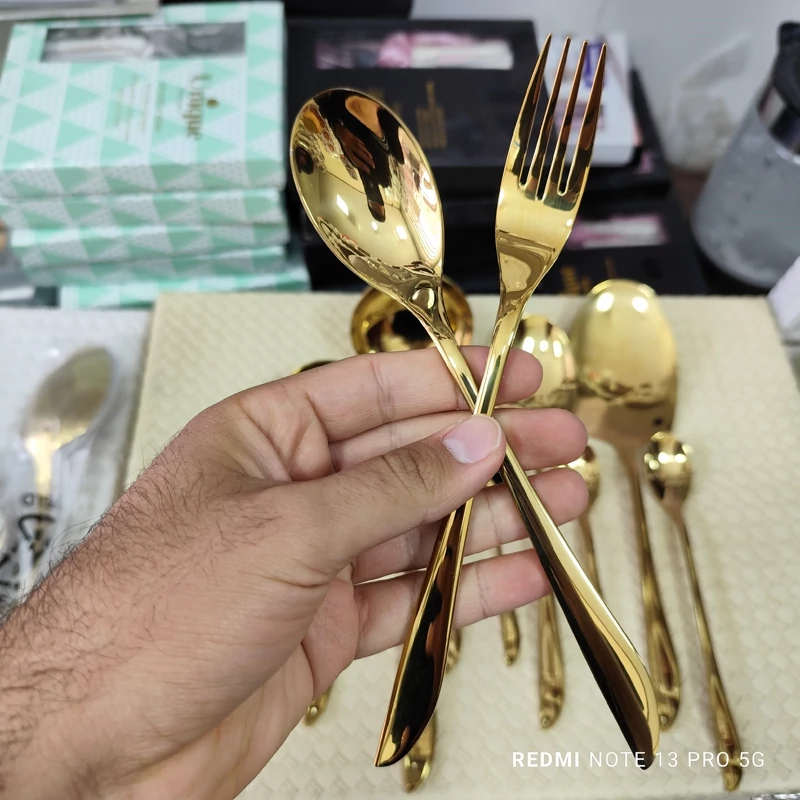 سرویس قاشق چنگال۱۲۰ پارچه دهنه اروپایی طلایی